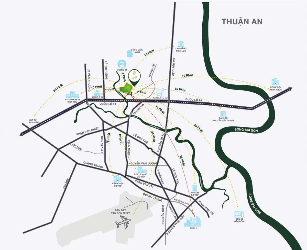 Tiềm năng phát triển trong tương lai gần vì vị trí nằm gần trung tâm Quận 12. Cạnh Ga Metro tuyến số 4 Thạnh Xuân – Bến Thành. Giúp rút ngắn thời gian di chuyển về các quận trung tâm thành phố. Đồng thời dễ dàng di chuyển đến quận Gò Vấp, Bình Thạnh, Thủ Đức và sân bay quốc tế Tân Sơn Nhất.