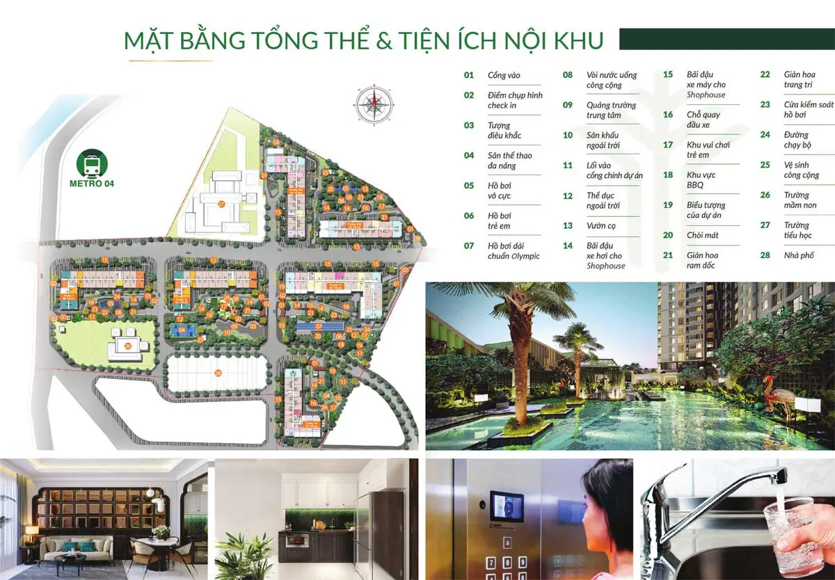 Khoảng 77% diện tích đất được dành cho tiện ích nội khu. Đặc biệt mảng xanh thiên nhiên được chú trọng khi diện tích công viên rộng 3hecta. Hình thành lên khu phố xanh chuẩn Singpapore ngay tại đô thị bậc nhất Việt Nam.