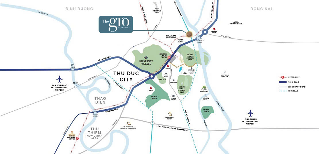 The Gió Riverside là dự án căn hộ chung cư mới nhất của chủ đầu tư tập đoàn bất động sản An Gia Group, tọa lạc ngay đường Xa Lộ Hà Nội, P. Bình Thắng, Thành phố Dĩ An, Tỉnh Bình Dương.
