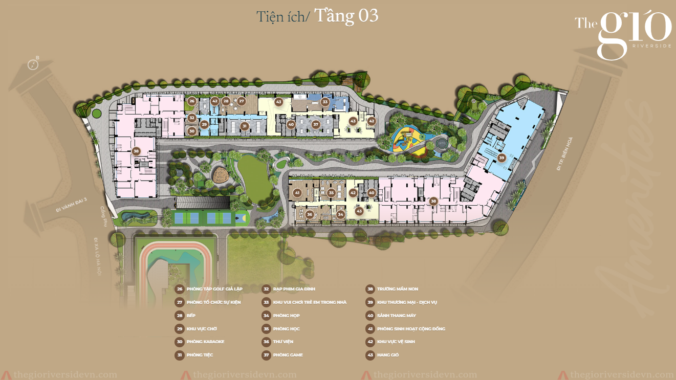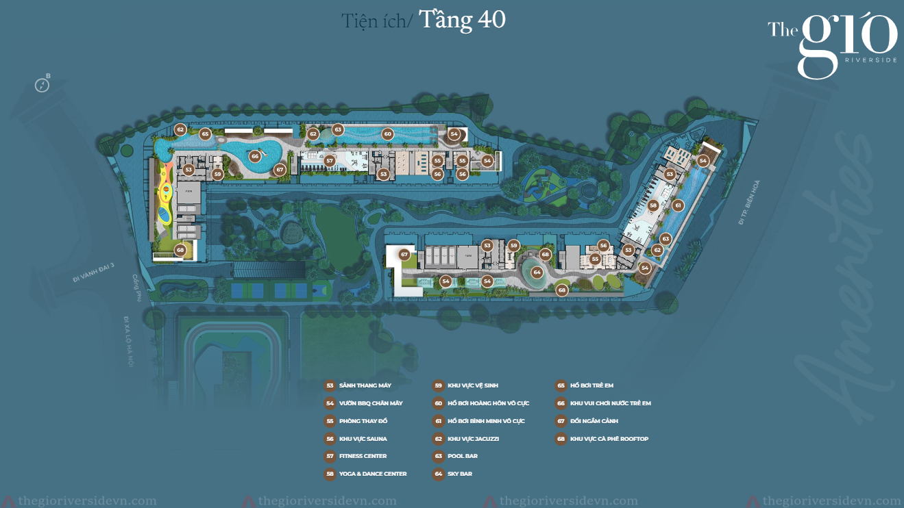 The Gió Riverside mang đến một không gian sống hiện đại, với hệ thống tiện ích nội khu đẳng cấp như hồ bơi tràn bờ, công viên ven sông, khu vui chơi trẻ em, phòng gym, spa và khu thương mại sầm uất. Bên cạnh đó, dự án còn được thiết kế theo phong cách xanh bền vững, giúp cư dân tận hưởng một cuộc sống trong lành, gần gũi thiên nhiên nhưng vẫn tiện nghi, sang trọng.
