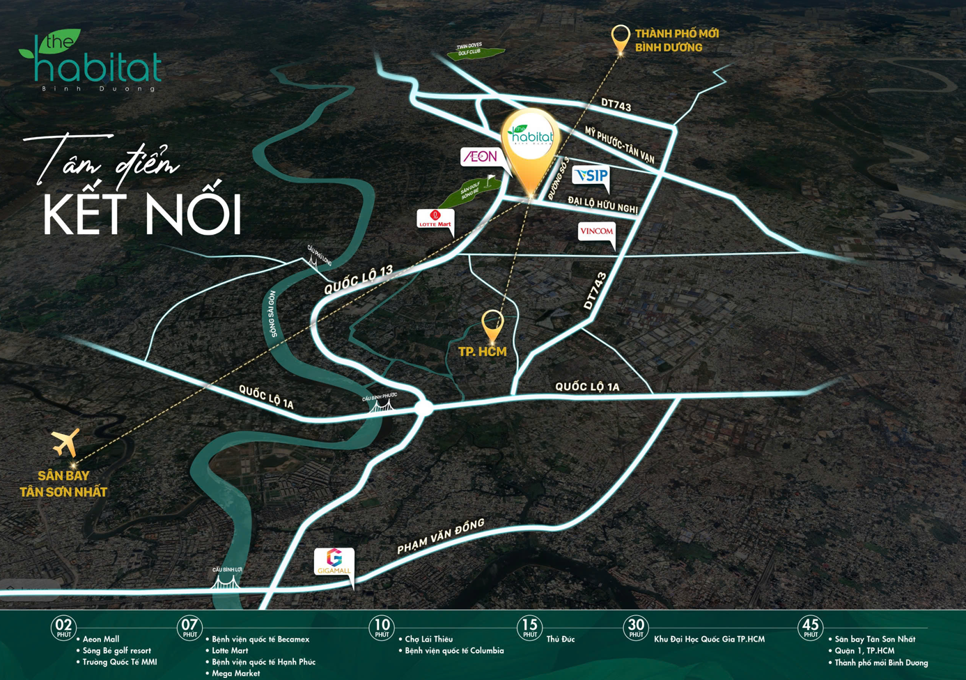 30 – 45 phút đến Khu Đại Học Quốc Gia Thủ Đức, Sân bay Tân Sơn Nhất, Quận 1 – Tp. HCM